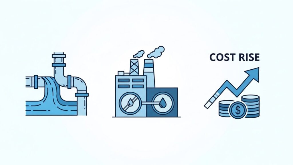 수도요금은 단순히 물 사용량만이 아니라, 상수도 시설 운영비·하수 처리 비용·노후 배관 교체비용·물가 인상률 등 여러 요소가 복합적으로 반영됩니다.